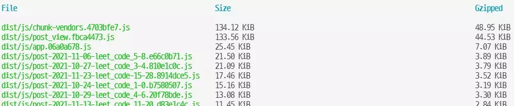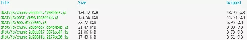 단 5개의 파일만 출력되고 있습니다. chunk_vendors와 post_view js 파일은 제가 임의로 이미 코드를 split 해놓았기 때문에 문제가 없지만, 메타데이터와 게시글의 내용은 모두 app.js 파일 내에 들어가있습니다.